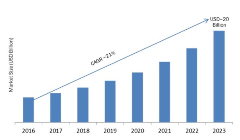 The Entertainment Robots Market is expected to grow at approximately USD 20 Billion by 2023, at 21% of CAGR between 2017 and 2023.