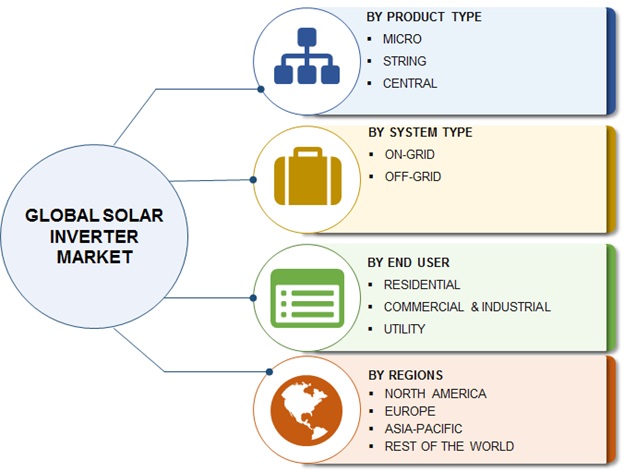 This study provides an overview of the global solar inverter market, tracking three market segments across four geographic regions. The report studies key players, providing a five-year annual trend analysis that highlights market size, volume and share for North America, Europe, Asia Pacific (APAC) and Rest of the World (ROW). The report also provides a forecast, focusing on the market opportunities for the next five years for each region. The scope of the study segments the global solar inverter market by its product type, by system type, by end user and by region.