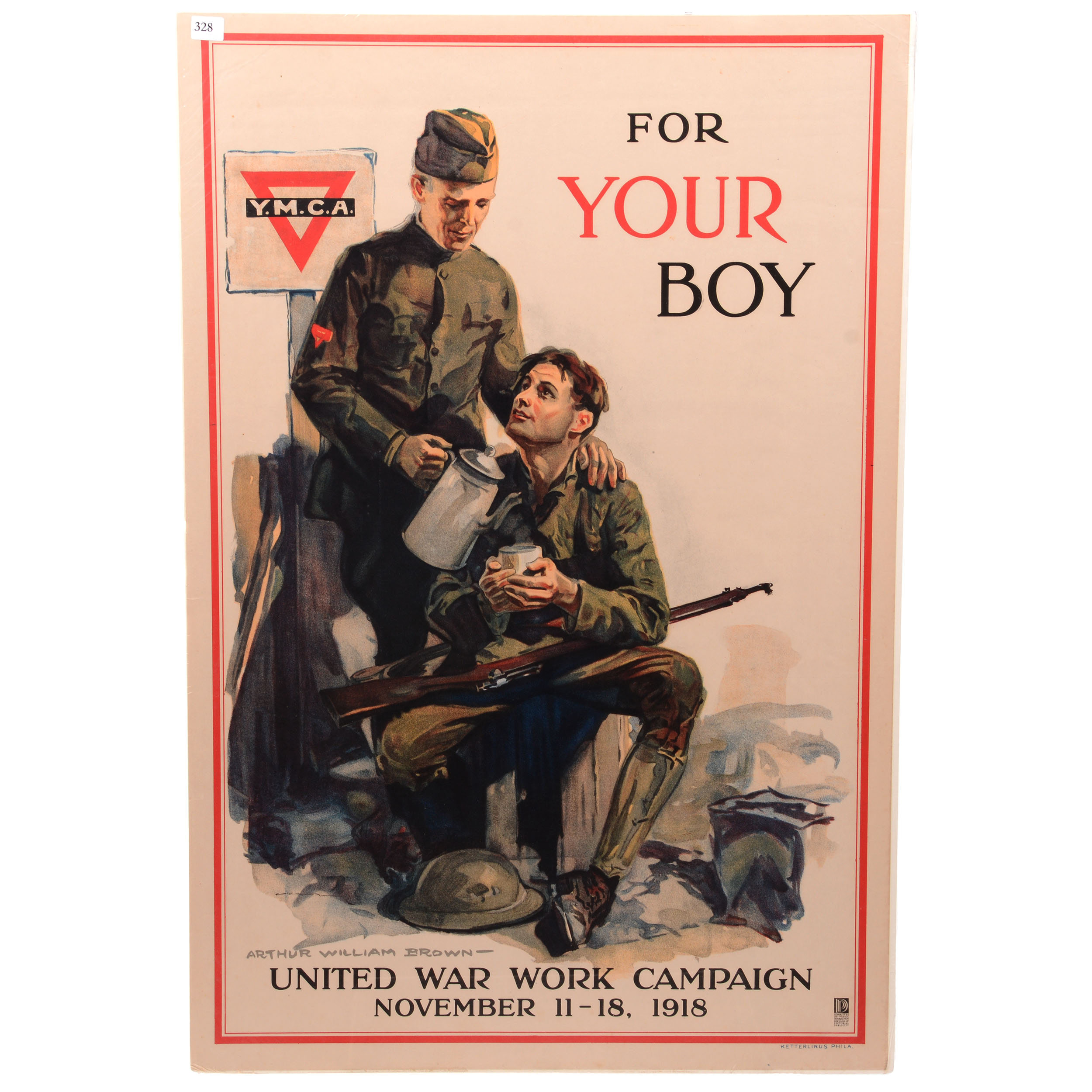 A nice selection of vintage World War I propaganda posters will also be offered, to include ones titled Third Liberty Loan Corporation – Boy Scouts of America (American lithographic Co.); Help Crush the Menace of the Seas (O’Conner-Fyffe); YMCA For Your Boy (by Ketterlinus of Philadelphia, Pa., dated 1918); and Have You Answered the Red Cross Christmas Roll Call? (the American Red Cross, 1918).