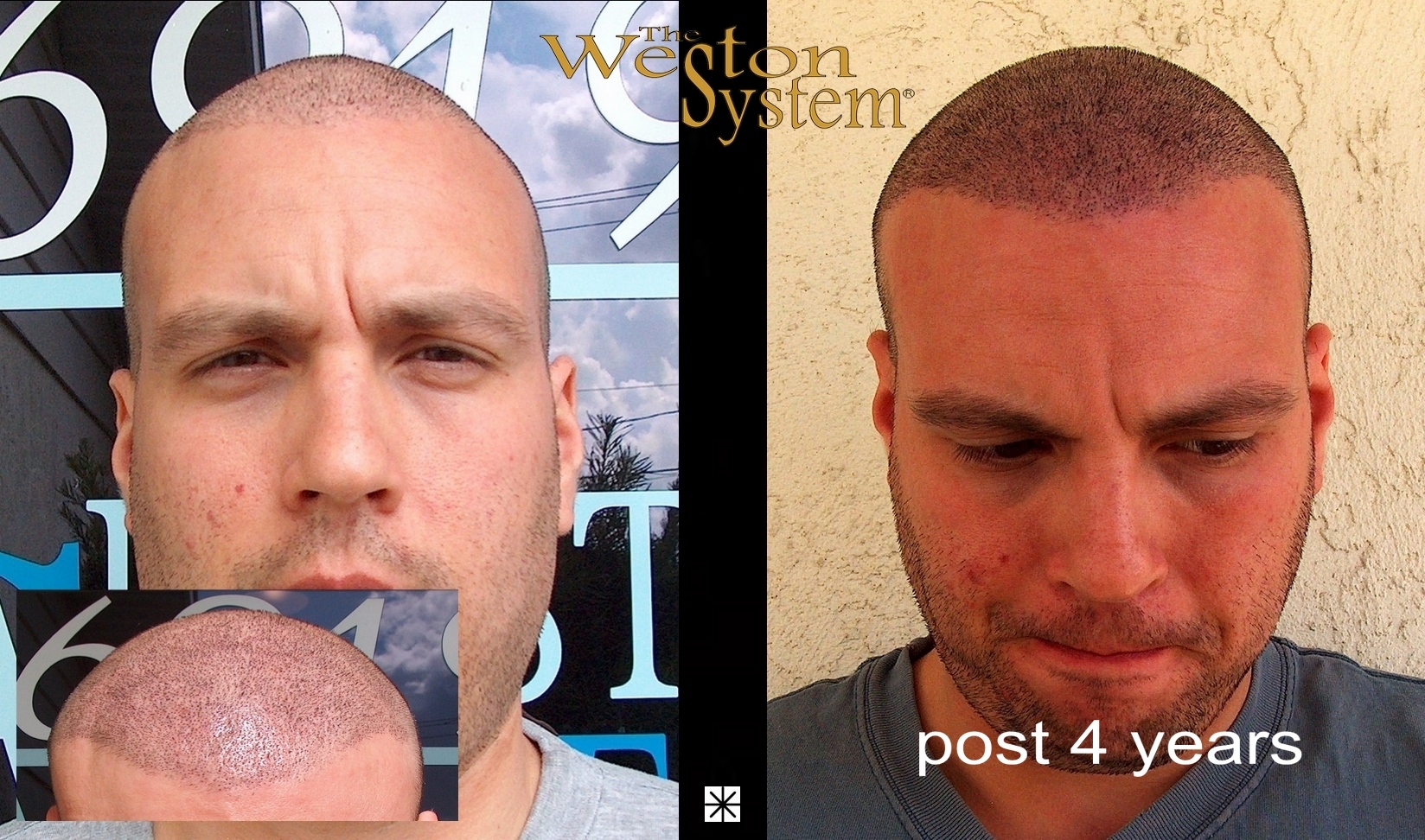 Offering a one appointment only and permanent, non-surgical solution to hair loss for both men and women, The Weston System℠ is an exclusive and patented technologically-advanced hybrid medical scalp micropigmentation method that mimics lost follicular hair units on the scalp. This System is successful in replicating lost follicles for men, women and also for camouflaging hair transplant scars and added density.