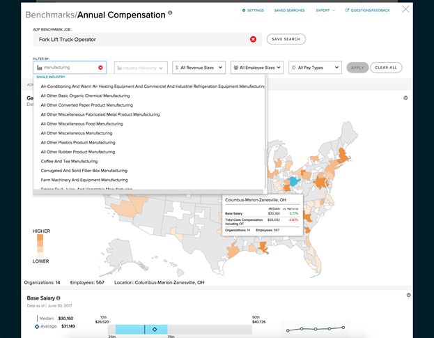 Expanded set of jobs: Benchmarking now offers insights for more than triple the number of jobs previously available -- expanding to more than 2,400 jobs. Do you manage pastry chefs? Or forklift operators? Now you can acquire market insight into very specific positions to ensure that you're accurately measuring yourself against your competition in order to better attract and retain top talent and manage your workforce operations effectively.