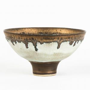 Two exemplary pieces of British studio pottery got paddles wagging. One was a hand-thrown and decorated bowl with manganese edge and foot by Lucie Rie (1902-1995), artist signed ‘LR’ with fine inlaid turquoise sgraffito, 7 ½ inches in diameter ($56,640). The other was a white spherical pot with disk top made circa 1965 by Hans Coper (1920-1981), signed ‘HC’ and 6 ½ inches in height ($40,120).