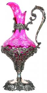 Highlight lots will include an extremely rare amberina Russian pattern bowl, with clear cut buttons, in possibly the rarest color in all of American Brilliant Cut Glass; and a museum-quality cranberry cut to clear Dorflinger ewer, 17 inches tall, commissioned for the wedding in 1899 of William K. Vanderbilt and Virginia Graham Fair, with an extensive pattern embossed sterling silver base, body and handle.