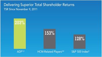 - ADP Total Shareholder Returns (TSR) have consistently outperformed the market.
