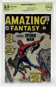 A copy of Marvel Comics Amazing Fantasy #15 from August 1962 – the first appearance of Spider-Man, signed by the legendary artist Stan Lee – sold for $13,750.