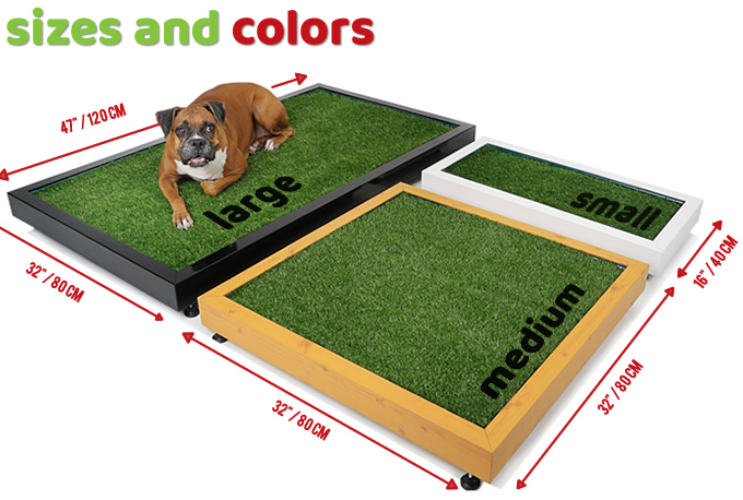 The grass is a special-made artificial grass for dogs which allows easy drainage, avoids fungus and makes the potty training a lot easier.