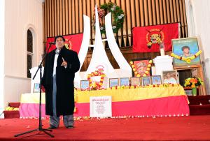ஈழ விடுதலையை விரைவில் அடைவதற்குத் தமிழர்கள் அனைவரும் ஒன்றிணைந்து போராட வேண்டும். தமிழர்களிடம் உள்ள குறையே ஒற்றுமை இன்மை என்பதை நான் பல காலக்கட்டங்களில் உணர்ந்திருக்கிறேன். அந்தச் சிறுசிறு வேறுபாடுகளை எல்லாம் களைந்துவிட்டு ஒரே அணியில் நாம் நின்று ஈழ விடுதலைக்குப் பாடுபட வேண்டும். பல அரசியல் கருத்துகள் இன்றைய உலகில் முன்வைக்கப்படுகின்றன. ஆதைத்தான் புவிசார் அரசியல் என்று குறிப்பிடுகின்றனர். ஆனால், புவிசார் அரசியல் காலத்திற்குக் காலம் மாறிவரும் சூழலும் உள்ளது. எனவே, உலகில் வாழும் தமிழர்கள் அனைவரும் ஒன்றிணைந்து அந்ததந்த நாடுகளில் உள்ள அரசியல் தலைவர்களைச் சந்தித்துத் தமிழர்களுக்கான உரிமையையும், நீதியையும் பெற வேண்டும். அதற்குரிய அழுத்தத்தையும் நாம் அளிக்க வேண்டும். அப்படிப்பட்ட தொடர் அழுத்தத்தின் காரணமாகத்தான் அரசியல் சூழல்கள் நமக்கு சாதகமாக மாறும். இலங்கை இராணுவ அரசு நிரந்தரமாகப் பொய்யைக்கூறிப் பல நாடுகளின் தலைவர்களை ஏமாற்றி,ஈழத்தின் விடுதலையைத் தடுத்துவிட முடியாது. ஈழத்தை வென்றெடுப்பதற்கு இந்த மாவீரர் நாளில் நாம் ஒற்றுமையுடன் செயல்படுவோம் என்ற உறுதி ஏற்க வேண்டும். அதுவே அந்த மாவீரர்களுக்கு நாம் செலுத்தும் உண்மையான காணிக்கையாகும் என்று கூறி எனது உரையை நிறைவு செய்கிறேன்.