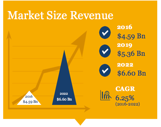 The coding and marking market is projected to grow from $4.59 billion in 2017 to $6.60 billion by 2023, growing at a CAGR of 6.25% during 2016-2022.