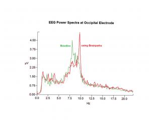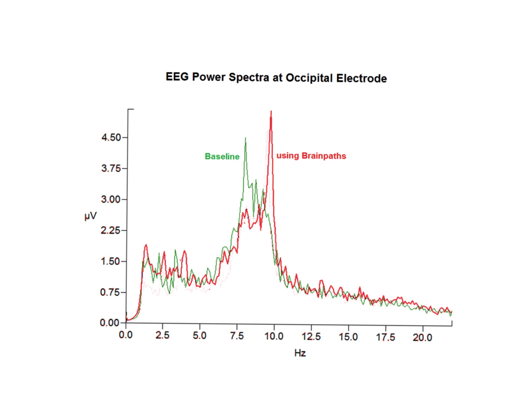 2. Does consistent daily use (20 minutes) of Brainpaths over the course of one month lead, through mechanisms of neuroplasticity, to a persistent baseline increase in alpha peak frequency that is seen even when the device is not being used during the EEG recording?