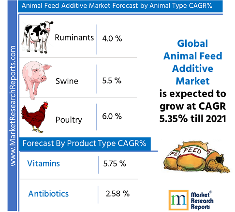 Global Animal Feed Additive Market to Grow at a CAGR of 5.35% till year 2021, Finds New Market Research Report