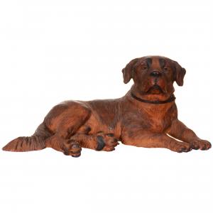 Also sold will be an American Renaissance Revival two-hinge, standard grade patent desk made circa 1874 by Wooton Desk Company (Indianapolis, Ind.), walnut with burl walnut and birds-eye maple highlights; and a late 19th or early 20th century hand-carved Black Forest wooden male dog, 4 ½ inches tall, showing a finely detailed male St. Bernard at rest, attributed to the Swiss carver Walter Mader.
