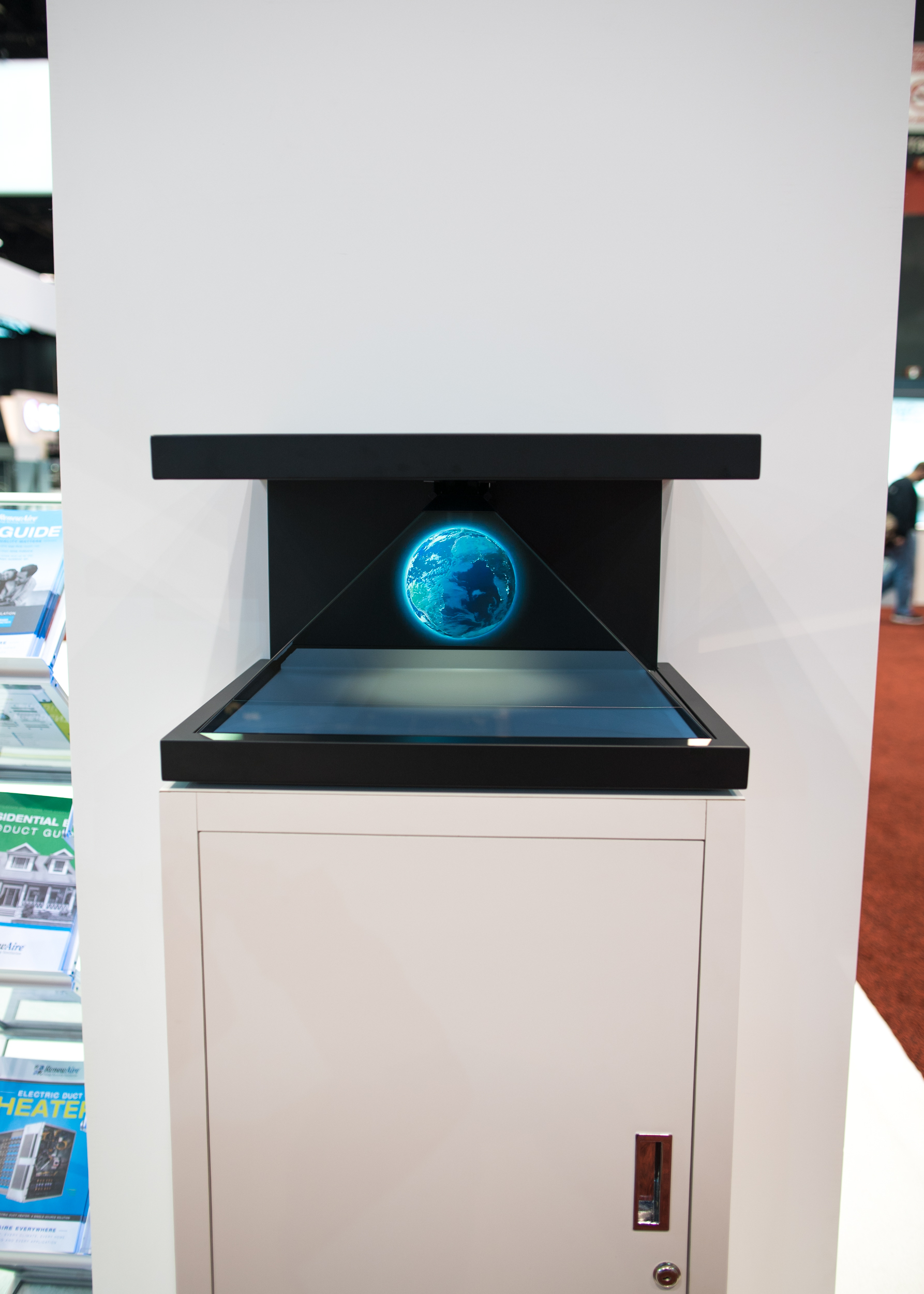 3D Hologram Display Rentals for Trade Shows, Conventions, Live Events, Corporate Events, Exhibit Halls, and More! www.3DHologramRentals.com Chicago Base 3D Hologram Rentals incorporated three unique hologram displays at a recent global industry trade show event at the Las Vegas Convention Center. Each hologram display was designed and branded for maximum visibility, exposure and interactive engagement. Holographic content was specifically developed for the display units, and designed for this particular event. This trade show drew more than 60,000 domestic and international buyers and industry leaders.