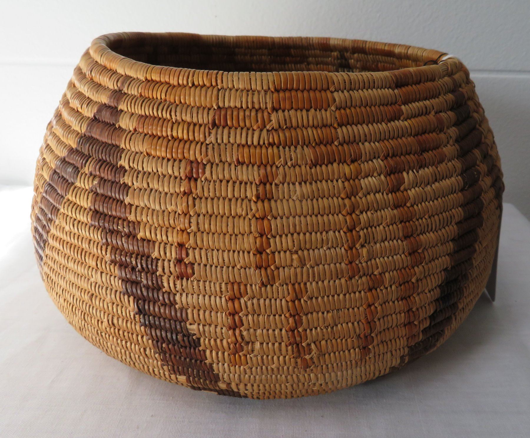 Native American handmade Chemehuevi basket, crafted circa 1920s in the Colorado River area (est. $1,000-$3,000).