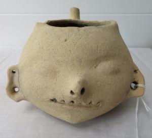 Prehistoric clay pot effigy of a human head from the Southeastern U.S., 6.5 inches tall (est. $1,000-$3,000).