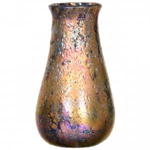 A rare Tiffany Cypriot art glass vase boasting gorgeous colors, 5 ½ inches tall and signed “L.C. Tiffany Favrile 8324J”, knocked down for $6,000. Also, a Tiffany art glass vase, 6 inches tall and iridescent butterscotch in color, with an opalescent pulled feather design with textured diamond quilting and a square mouth, signed “L.C.T. K287”, an example of the highest quality, changed hands for $3,000.