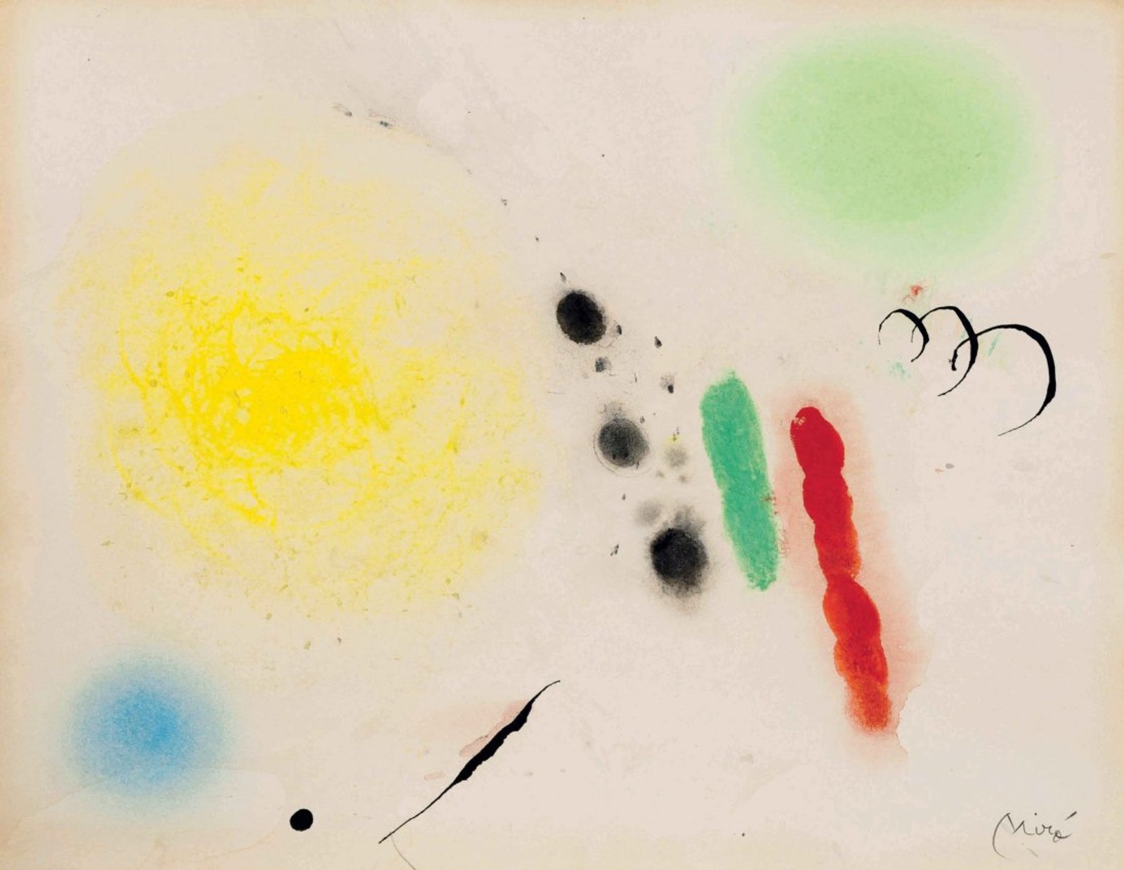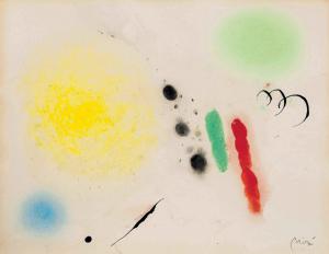 Watercolor, India ink and pastel on paper by Joan Miro (Sp., 1893-1983), signed lower right ($64,900)