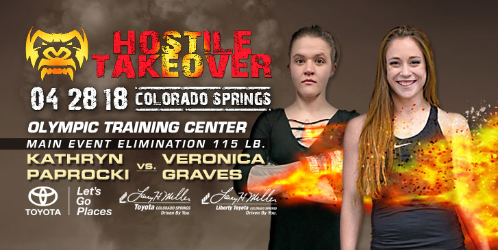 “Hostile Takeover” sets the standard for MMA events in COS, featuring female main event Graves vs Paprocki, presented by Toyota Dealers of Colorado Springs.