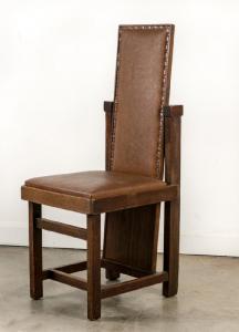 The leather upholstered slant back chair in oak by the renowned American designer Frank Lloyd Wright (1867-1959) was made around 1903 and originally resided in the William E. Martin House in Oak Park, Ill. It has a “J.E. Ward & Son” upholstery tag and last sold at Christie’s in New York in 2006. It’s also expected to knock down for $10,000-$15,000.
