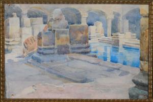Watercolor painting attributed to John Singer Sargent, titled Classical Interior with Reflecting Pool (est. $30,000-$60,000).