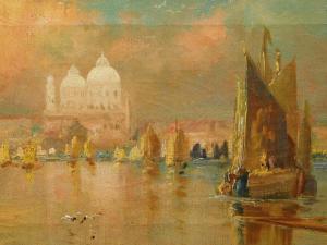 The other is an oil on canvas painting attributed to Thomas Sidney Moran (Am., 1837-1926), titled Venice Canal. The work, signed and 17 ½ inches by 27 ½ inches, framed, came out of a private South Carolina collection. Also, a painting attributed to Beatrix Potter (Br., 1886-1943), titled Happy Pair, depicting two attired rabbits under an umbrella, should hit $30,000-$40,000.