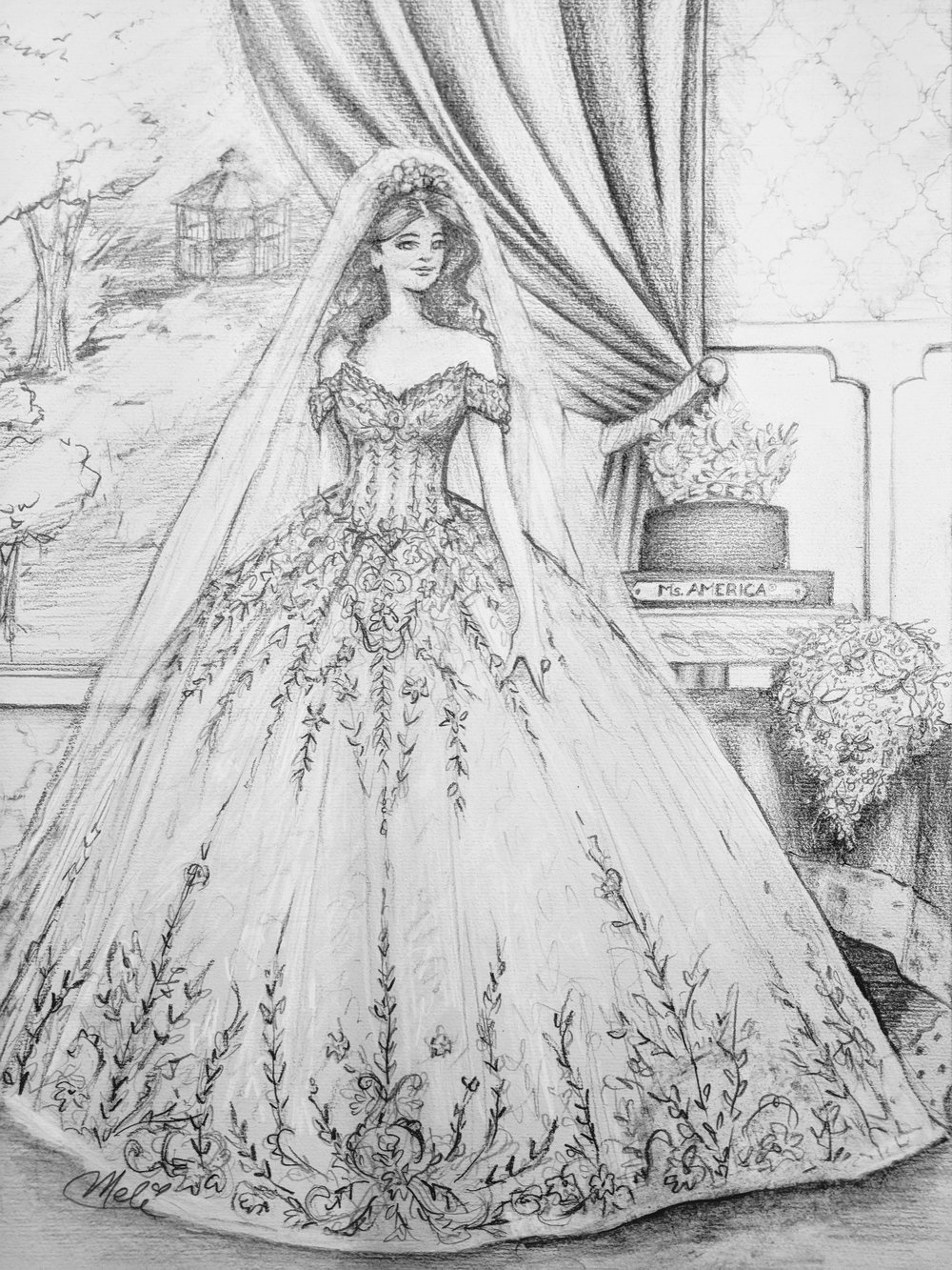 Stephen Yearick Creates Historic Wedding Gown for Susan Jeske, Ms. America 1997( Gown Illustration By Melissa Nault Of Canada)