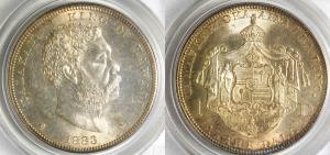 The Hawaii collection is bound to attract keen bidder attention, led by an extremely rare gold statehood medal, number 20 of just 50 pieces struck in 1959, 7.05 troy ounces (est. $10,000-$15,000); an 1883 $1 Hawaii coin, graded highly at PCGS OGH MS 64 (est. $13,000-$20,000); and a First National Bank of Hawaii $5 note, when Hawaii was a territory (est. $2,700-$3,500).
