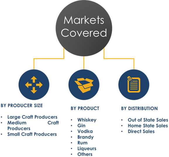 The US craft spirits market is divided into three major segments consist of product, product size, and distribution channels.