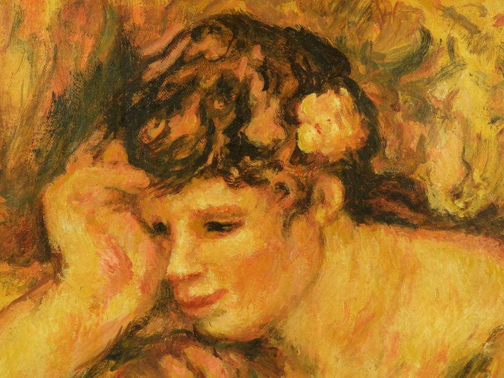 The rest, as they say, is history. Renoir went on to become a leading painter in the development of the impressionist and post-impressionist style. His paintings are notable for their vibrant light and saturated color, frequently focusing on people in intimate and candid compositions. The female nude was a primary subject. The painting in the auction is a fine example of his work.