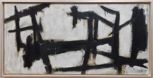 An oil on canvas abstract composition attributed to Franz Kline (Am., 1910-1962), 31 inches by 60 ½ inches (framed), is estimated at $150,000-$200,000. Kline was a key figure in the Abstract Expressionist and Avant-Garde movements. His emphatic black and white paintings (like the one in this auction) were set down with confidence and exemplified Action Painting achievements.