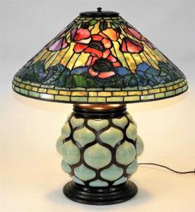 Tiffany Studios blown glass table lamp with 20 inch diameter Poppy shade of multi-colored Favrile glass (est. $80,000-$120,000).