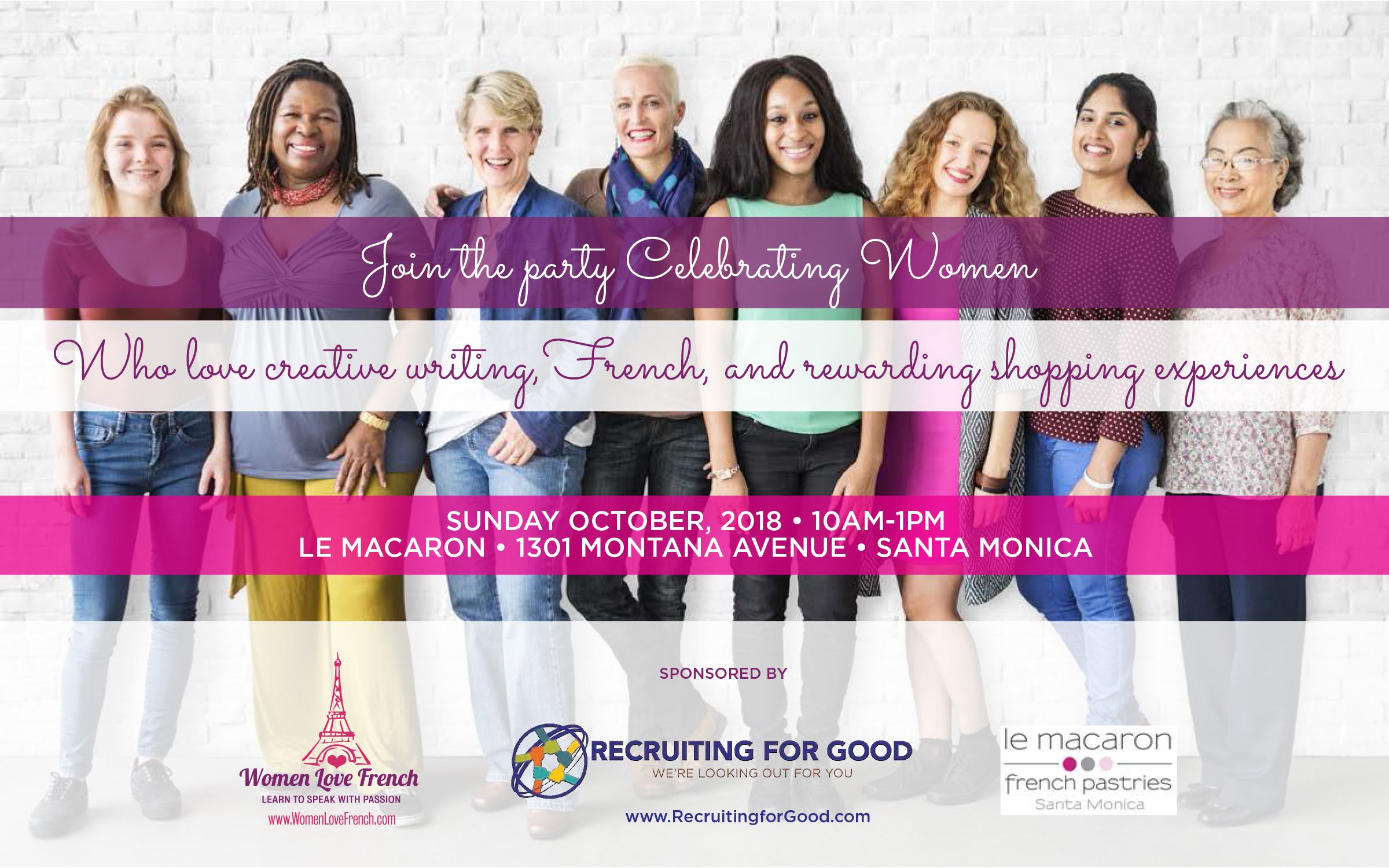 1. Attend Party Celebrating Women at Le Macaron in Santa Monica, on October 7th, 2018, between 1130am to 1pm.