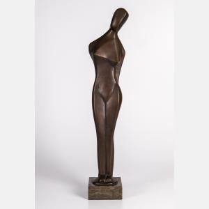 Bronze sculpture on a marble base by Margarete (Marg) Moll (1884-1977), titled Standing Female Nude (est. $2,000-$4,000).
