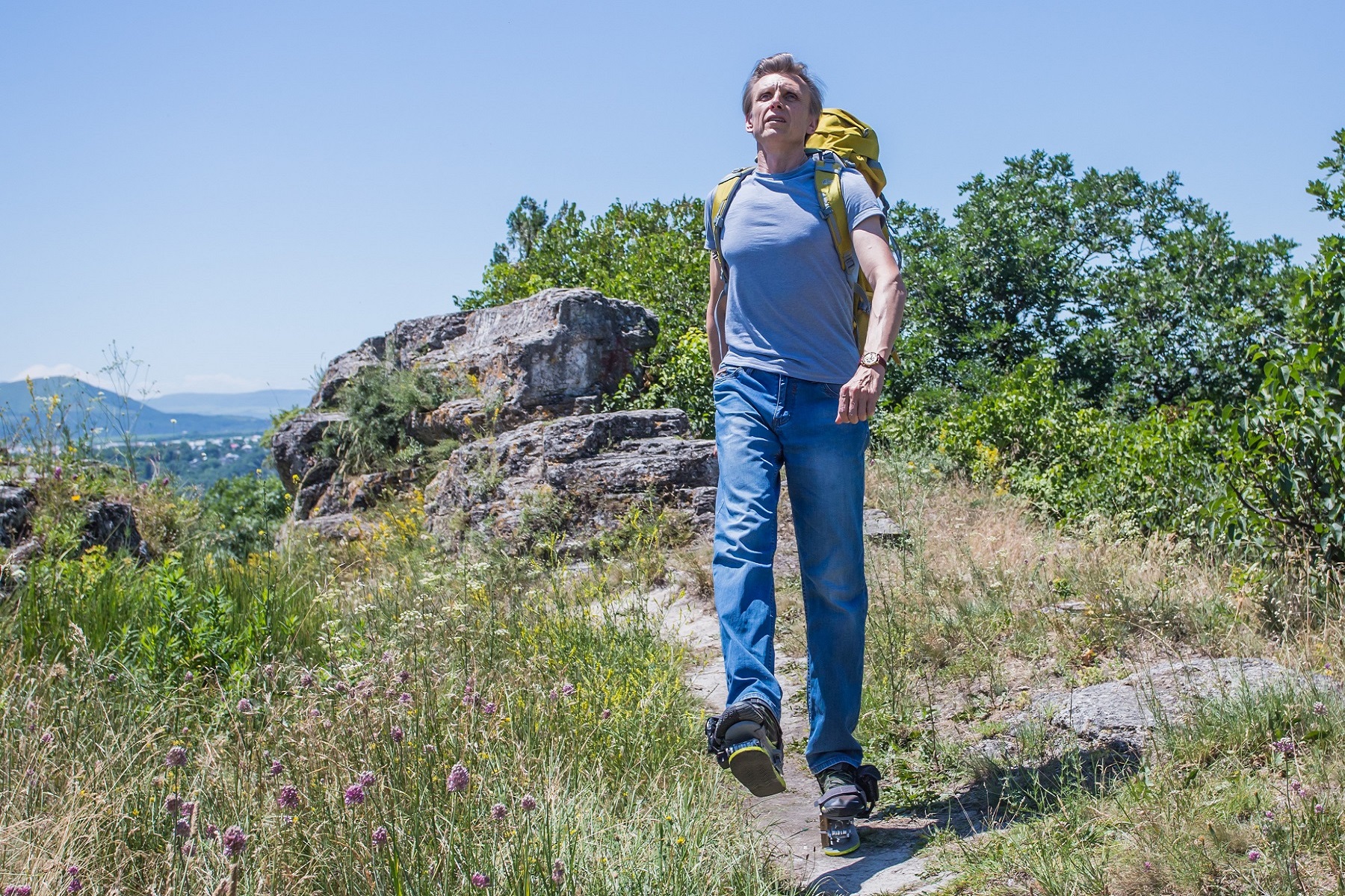 Kinetic Step’s Russian military engineer has invented a biomechanical exoskeleton which provides an easy method of travelling, based on the principle of physical pendulum movement. While developing KineticStep, the key task was to give individuals a chance to walk as easily and efficiently as a wheel rolls. This would provide consumers with the opportunity to walk 2-3 times further than their usual walking distance, to maintain a fulfilling, active lifestyle. The Kinetic Step exoskeleton has been specially designed to enable individuals to walk great distances and carry heavy loads with almost no effort.
