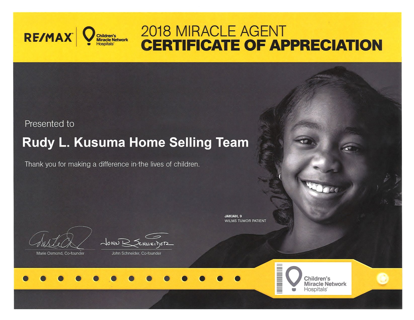 LOS ANGELES, CA, UNITED STATES , October 20, 2018 /EINPresswire.com/ -- RE/MAX TITANIUM – Rudy L. Kusuma Home Selling Team has made a difference in greater Los Angeles area by becoming a Miracle Office. Through the Miracle Home and Miracle Property programs, RE/MAX Associates can make a donation to Children’s Miracle Network Hospitals® after each residential and commercial transaction. And all donations benefit the Children’s Hospital in Los Angeles, the local CMN Hospital.“The Miracle Home/Miracle Property program is a simple yet impactful way to help raise awareness for our local CMN Hospital,” says Rudy Lira Kusuma, broker of RE/MAX TITANIUM. “Sixty-two children enter a CMN Hospital for treatment every minute. As leaders in the greater Los Angeles area business community, it’s vital that we show our support for the kids and their families.”