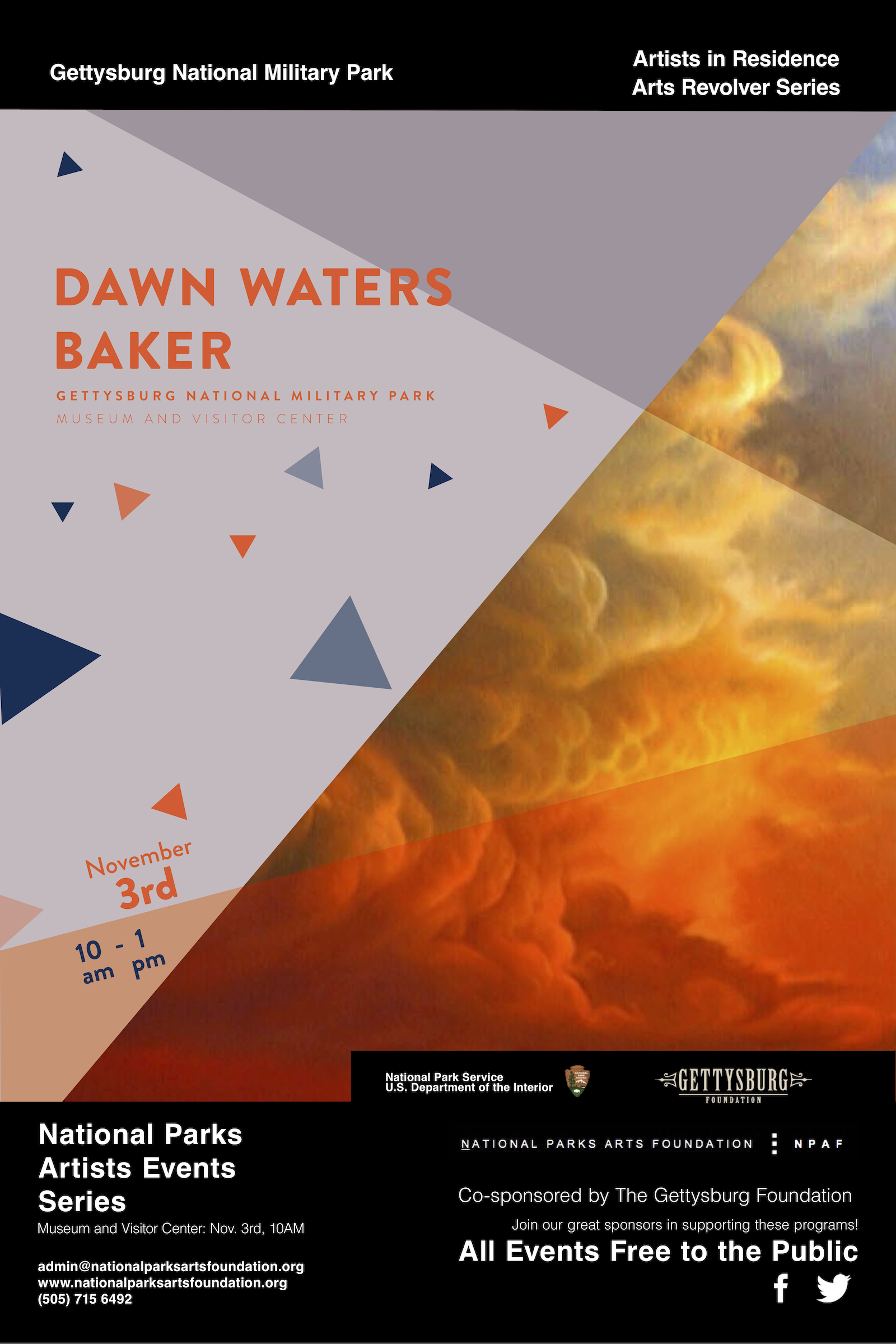 NPAF is a 501(c)3 non-profit dedicated to the promotion of the National Parks of the U.S. through creating dynamic opportunities for artworks that are based in our natural and historic heritage. This project is supported by The Gettysburg Foundation and other generous benefactors. All NPAF programs are made possible through the philanthropic support of donors of all sorts ranging from corporate sponsors, small business, and art patrons and citizen-lovers of the Parks.