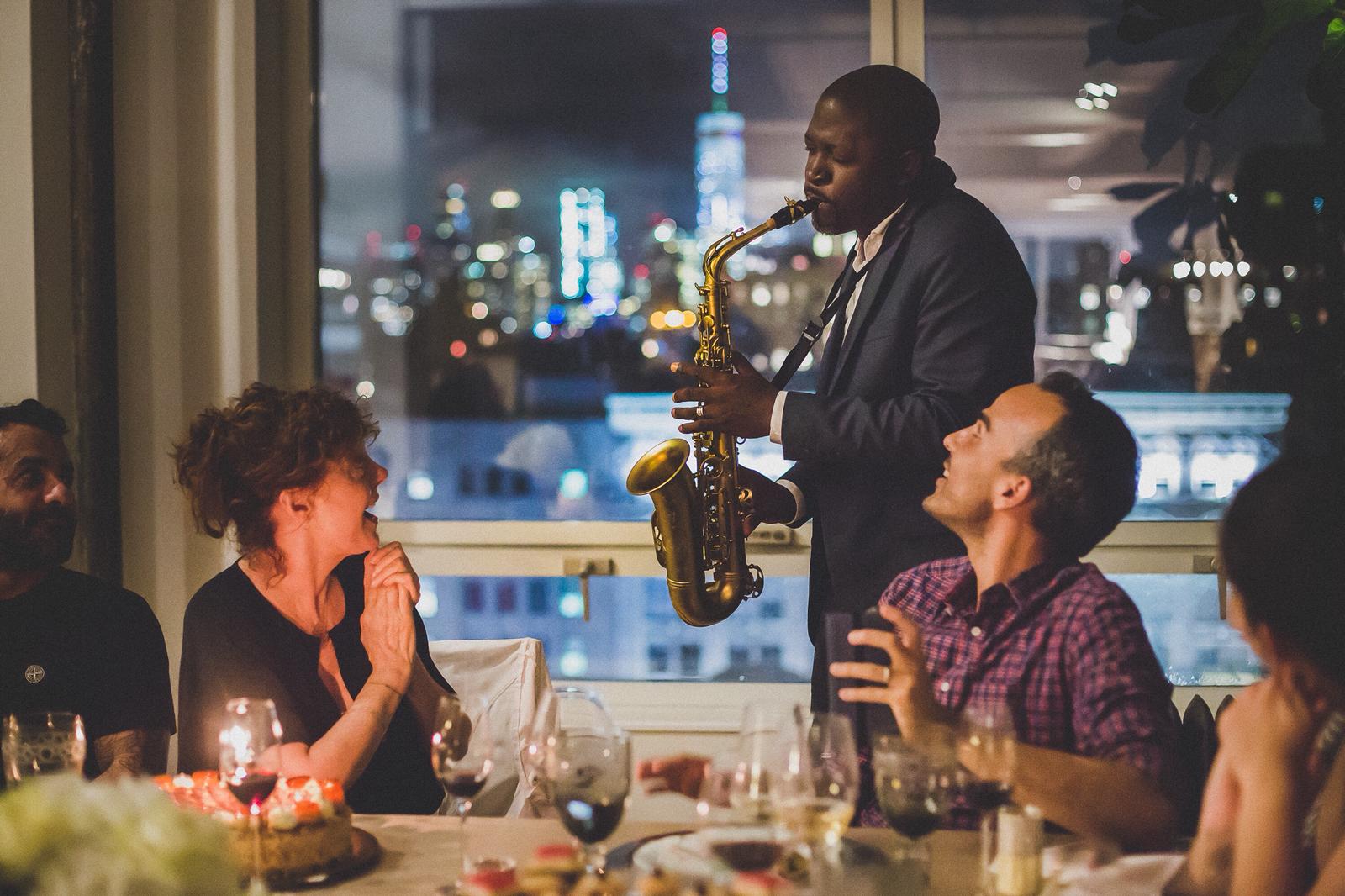 One of the surprise highlights of Sarandon's birthday celebration was the live performance of native New Yorker and saxophonist Michael Phillips, who toured with musical giants such as Stevie Wonder, Michael Jackson, and Prince. In 1996, Phillips was invited to perform at President Clinton's Inaugural Gala held at The Kennedy Center in Washington, DC. Other milestone events include the 80th birthday celebration for President Nelson Mandela in South Africa and a Superbowl appearance with Wonder.