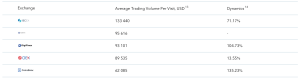 The negative leader in this category is Coinbase, whose average trading volume per visitor is 553 USD.