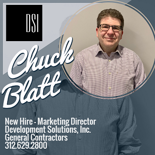 Chuck’s main goal at DSI will be to take them to the next level in the Chicago market. DSI has grown exponentially in the last decade and looks forward to evening more growth with the addition of this new position. With annual revenue over $100 Million annually we are looking for continued controlled growth with our new marketing efforts. As we grow and mature as a company we not only look to build, we look to give back. Chuck will help promote our DSI Cares initiative, which will be giving back to the community through various projects & charitable efforts. We will be participating, organizing and raising money for not for profits in the area. Mr. Blatt will be working in our Greektown offices on Green Street.