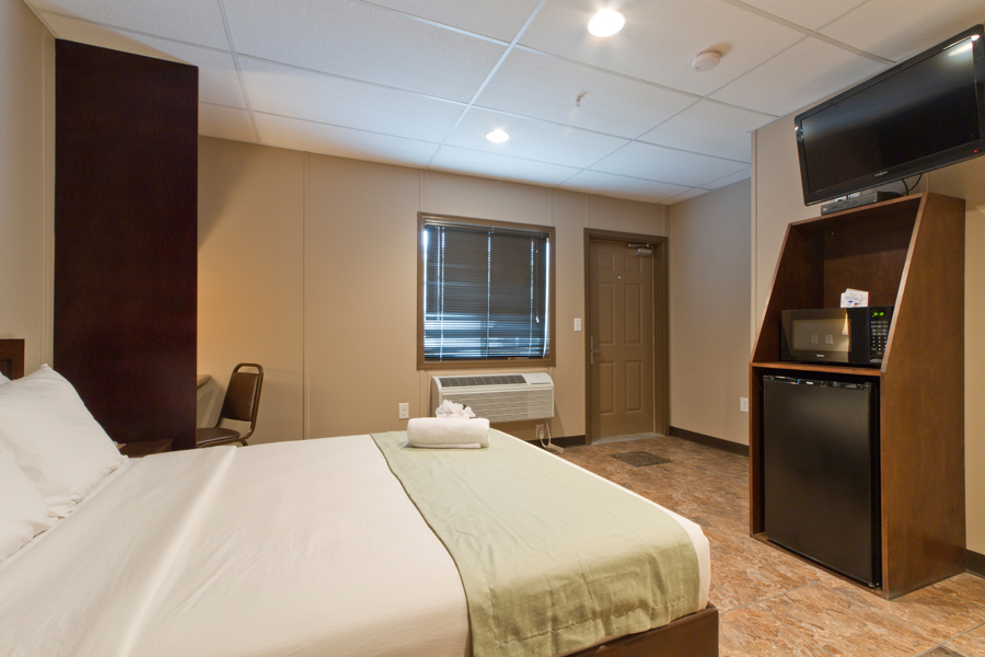 The 18,792 square foot Modular Dormitories include five buildings with 16 rooms in each, totaling 80 rooms. Each room includes either one queen bed or two twin beds with built-in furniture, a television, and a bathroom per unit.