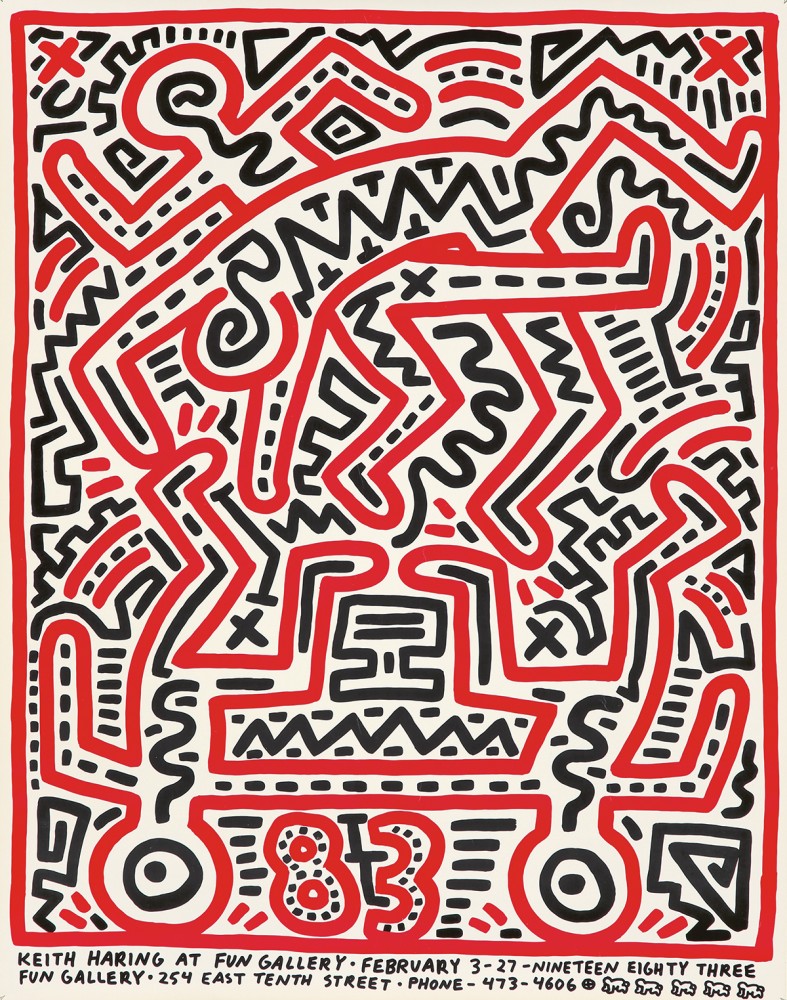 Exciting, mazy motion print by Keith Haring (1958-1990), titled Keith Haring at FUN Gallery (1983), 23 inches by 29 1/8 inches (est. $1,000-$1,200).