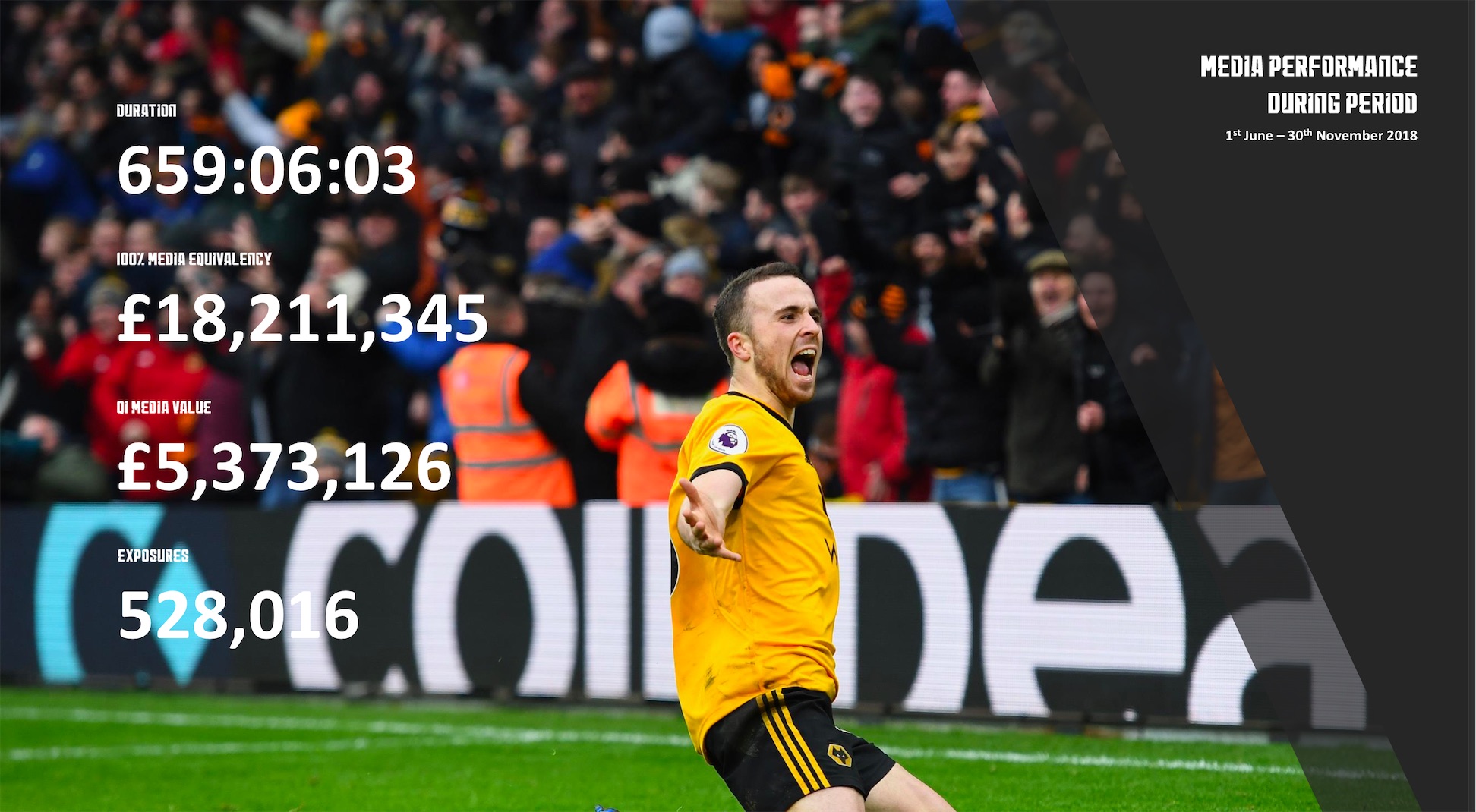 CoinDeal achieves another great result from the return of the media value from sponsorship. Thanks to the presence on the sleeves of Wolverhampton Wanderers, CoinDeal noted nearly 90 million in media value and more than a half million exposure.