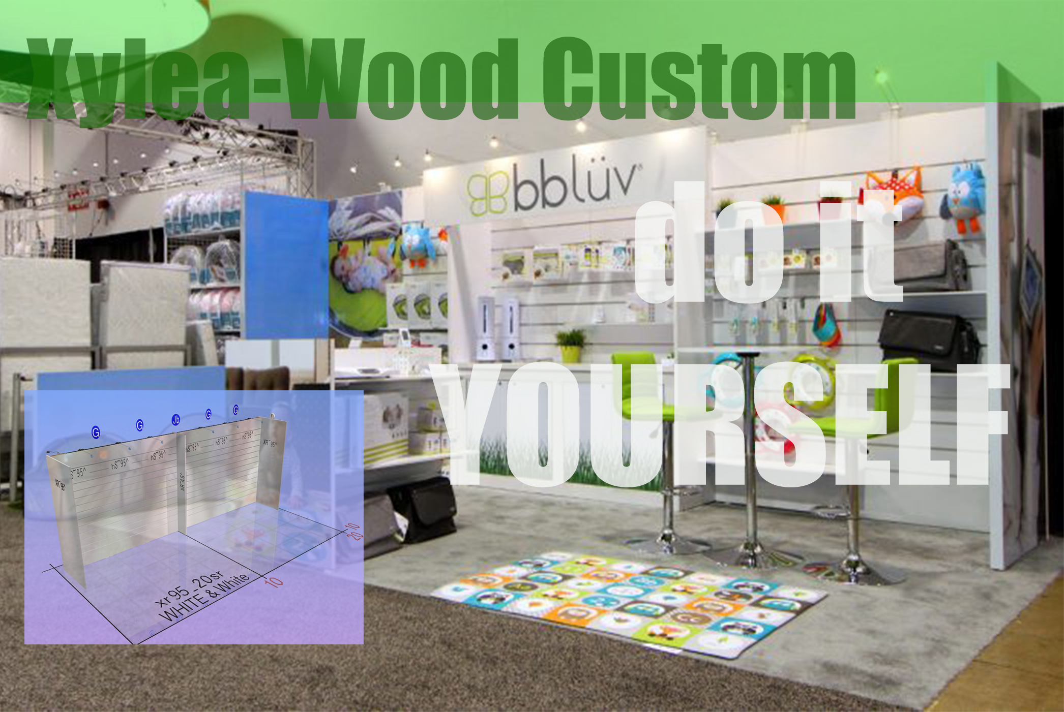 A custom slatwall exhibit system perfect for merchandising trade show exhibits and retail displays, Xylea Wood is a patented, modular paneling system that is perfect for use for trade show booths, display, exhibits, mall kiosks, retail displays, and more. With its strong yet lightweight design, Xylea Wood is the perfect trade show display solution for making an impact with your booth display, merchandising your projects, and saving you time and money on assembly, shipping costs, and other hidden fees.