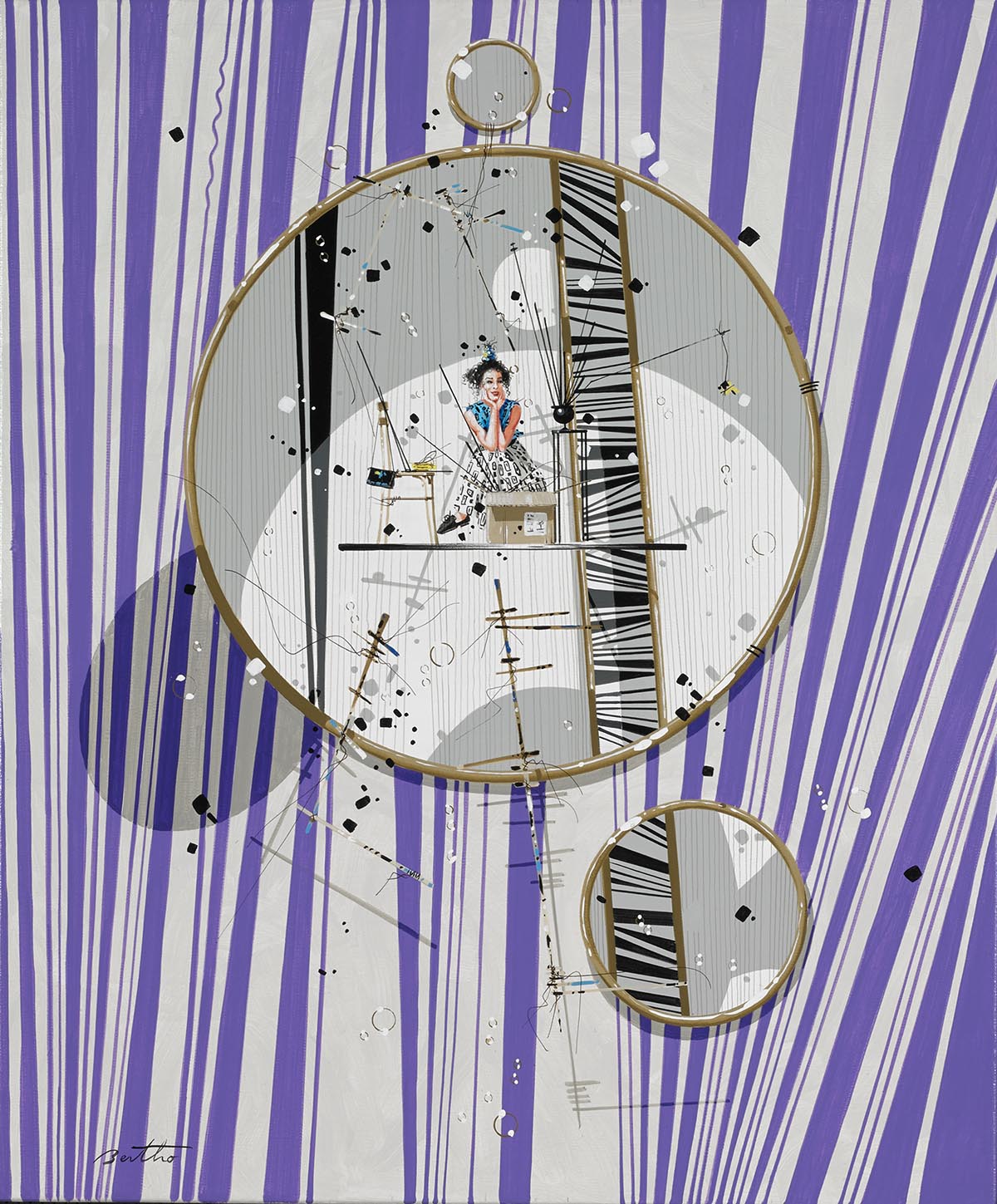 Bertho's works feature figures that are self-portraits or images of his friends in exaggerated predicaments that mimic the complexities of modern life. His inclusion of recurring poses and props such as bubbles, circles, and inner tubes is a contemporary blend of Pop Art.
