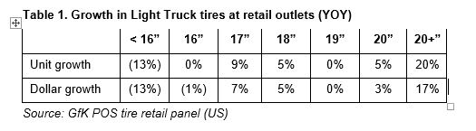 GfK POS data from major tire retail outlets also shows strong performance by larger rim sizes