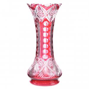 Also offered will be a 24 ¼ inch tall trumpet vase in the Sultana pattern by Blackmer, having a huge hobstar scalloped foot and brilliant blank; and a cranberry cut to clear vase in the Iris pattern by Clark, 18 inches tall, boasting fantastic color and a large hobstar base. Many other fine vases will also be sold.