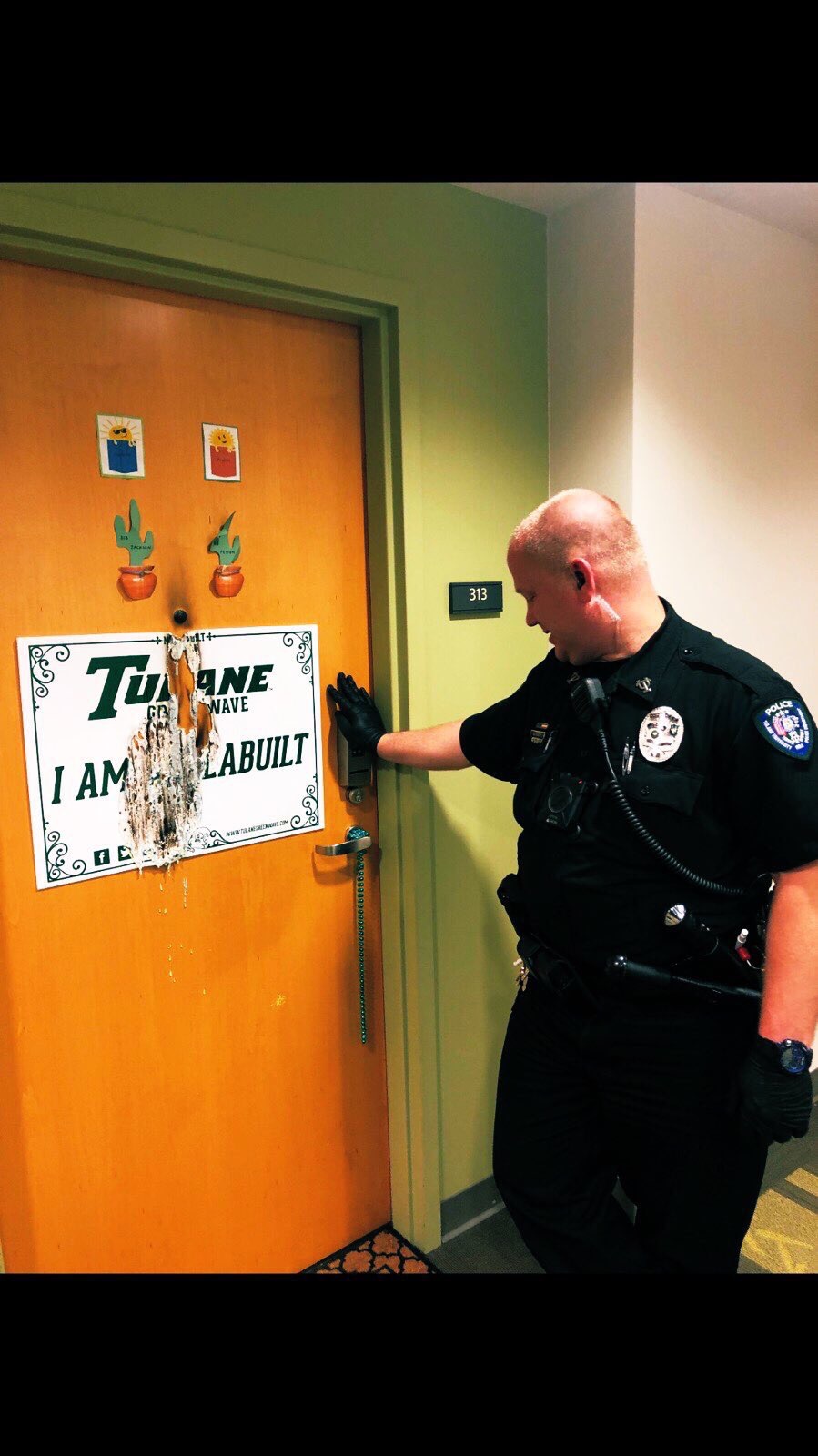 New Orleans, Louisiana, March 23, 2019 (GLOBE NEWSWIRE) -- Early this morning police were called to a Tulane University dorm room. Pictures below show that there was an attempt to light a student's door on fire. The door belongs to Young Americans for Liberty (YAL) student Peyton Lofton.