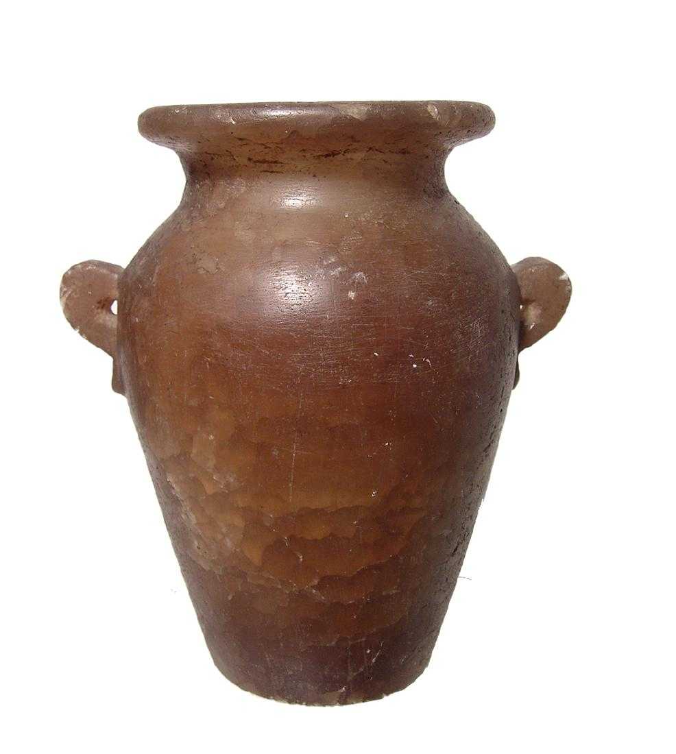 Handsome Egyptian alabaster jar (Ptolemaic, circa 2nd-1st Century BC), well-carved in semi-translucent stone, 6-inch-tall, featuring a body tapered to a flattened foot (est. $1,200-$2,000).