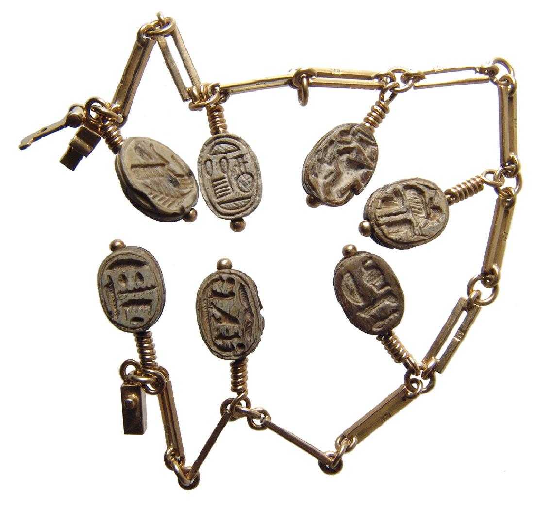 A fantastic 21kt yellow gold scarab bracelet, handsomely constructed with seven Egyptian steatite scarabs of similar size and shape, all but one from the New Kingdom (1570-1075 BC), including a sphinx, a crocodile and a lion, should make $600-$900. Also, a nice Near Eastern bronze dagger (circa 1200-800 BC), with the handle and blade cast as one piece, about 13 ½ inches in length and a well-preserved example, is expected to change hands for $600-$800.