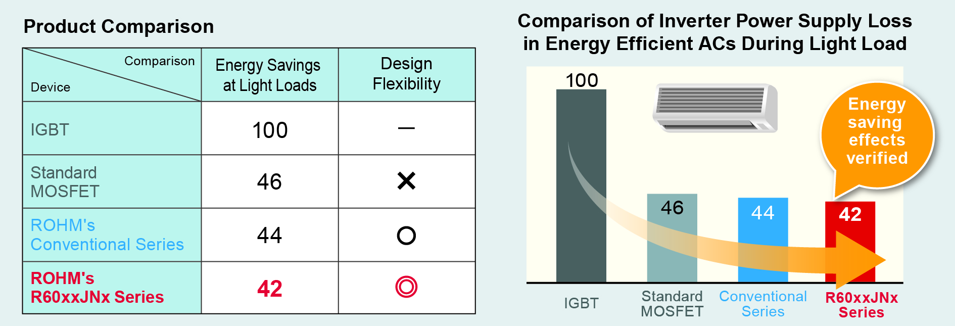 Reports show that close to 50% of the total power demand worldwide is used to drive motors, and with the continued spread of electrical appliances in emerging and developing countries, this percentage is expected to only increase. IGBTs are commonly used as switching elements in inverters that drive motors in home appliances such as refrigerators and ACs. Recent trends towards improving energy savings has driven the demand in a variety of applications for MOSFETs with reduced power consumption during steady state operation.