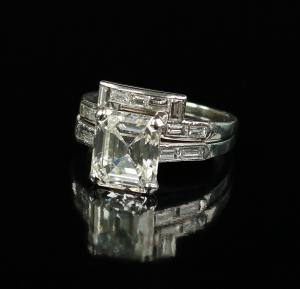 A diamond and platinum ring having one 3.12-carat prong set round brilliant diamond flanked by two tapered baguette diamonds should rise to $10,000-$15,000; while an Art Deco diamond and platinum bracelet with baguette diamonds is expected to knock down for $8,000-$12,000.